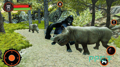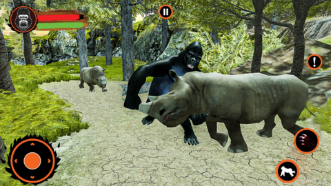 本作构建出一片原始感十足的热带雨林生态场景,不仅复刻了恐龙、犀牛等史前及大型野生动物,更深度还原大猩猩的生理特征与行为逻辑——包括高弹跳能力、抓挠动作、情绪化肢体语言等。独创“愤怒值”机制随战斗节奏实时累积,触发狂暴状态后攻防全面提升,玩家将在密林深处与各类巨型生物展开近身搏杀。