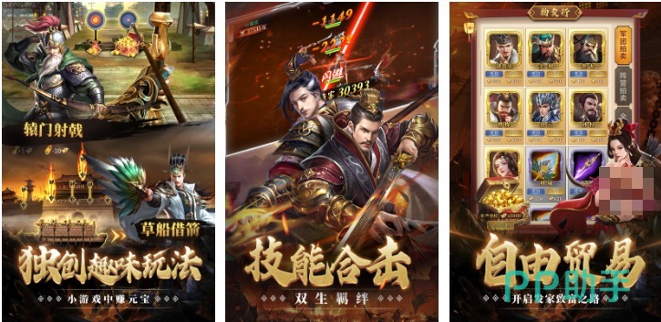 依托三国历史框架构建宏观战略格局,游戏内置动态势力演化系统,阵营归属随玩家行为实时变化。战斗特效采用粒子渲染技术呈现千军万马冲锋、箭雨覆盖、城墙崩塌等细节,配合史实战役任务链(如官渡、赤壁等),强化沉浸式历史代入感。武将羁绊组合自由度高,可触发群体增益、连锁技等深度协同机制。