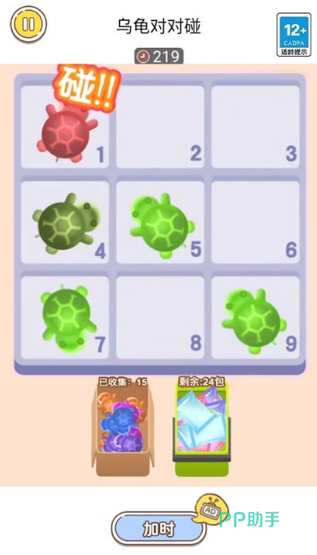 这是一部拆盲盒的小游戏,每一只小乌龟都要翻牌才能获得,考验大家的记忆和动手能力。对小孩而言,可爱的乌龟颜色设计,精美的日常水果,都是最心动的元素,只有准确的记住顺序,才能更快地对碰消除。从简单的固定模式,到大转盘的滚动玩法,游戏的难度不断增加,你要时刻牢记颜色和顺序,或者通过加时道具过关。