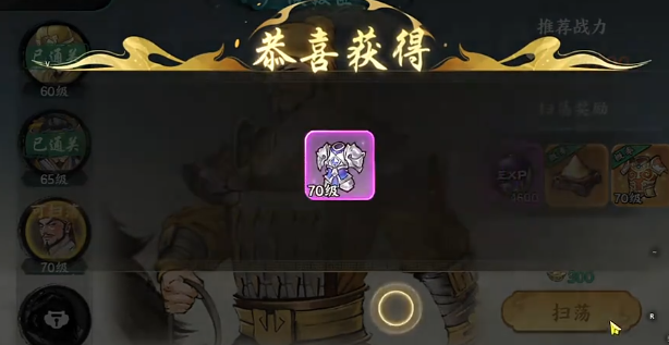 先说一下等级在突破之后的惊喜,主角达到70级之后,坐骑系统就会迎来飞跃。玩家的坐骑提升将升级到二级,别小看这一级的提升,可以全方位的提高角色属性,让剿匪还有刷怪的效率都能直接翻倍。搭配前期积累的资源,战斗力就能得到进一步的提升。70级比较核心的玩法就是剿匪任务,不同于低等级的普通怪,70级的匪寇。挑战性十足,奖励也是比较充足的。这里不需要复杂的操作,遇到70级的匪寇,直接选择剿灭即可,打完之后就能解锁扫荡功能。