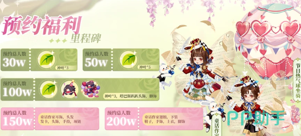预约福利是这一次的关键,奖励力度和预约的人数会挂钩。只要完成预约,在开服的当天就能免费获取冬日暖阳套装。这一套衣服不仅好看,还会拥有收藏意义,所以千万别错过。更让人期待的是阶梯解锁奖励,预约人数达到30万全员解锁神叶三。预约人数达到50万再增加神叶3。如果预约人数达到100万可以额外的增加三个,还可以获得塔巴斯啪啪头饰以及角饰。150万就能解锁节日热气球座椅,200万可以凑齐童话作家套装全套部件,从头到脚全部都有。