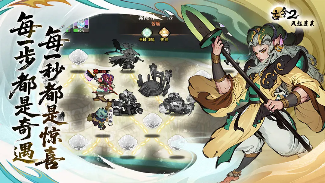 游戏的画面表现力也非常的不错,水墨画的画风在经过了2d卡通方式进行渲染以后,不仅让所有的场景都变得更具有古色古香的氛围感以外,角色的建模更是彰显了古风的唯美感,丝毫不会让玩家产生画质粗糙感觉。