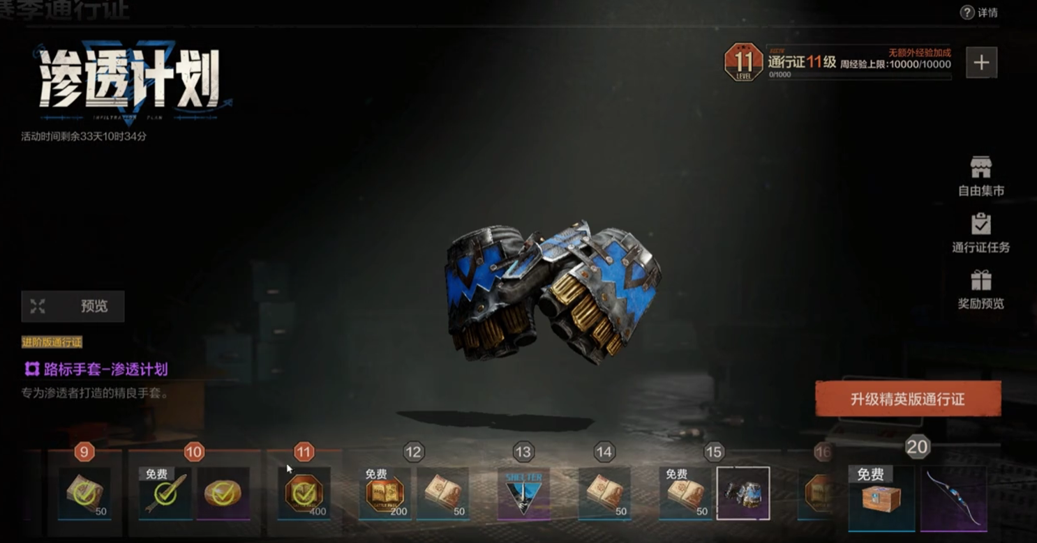 首先在商城中,它拥有着所有游戏都拥有的一个基础——那就是赛季通行证,在赛季通行证中,他拥有着各种时装,这次的赛季通行证是以渗透计划为主的时装,在这个渗透计划的系列,他所有的皮肤基本上主打的都是蓝色系,不仅拥有着蓝色猎弓,蓝色斧头,还有着蓝色路标套装可以让玩家们获取,除此之外,在这次的通行证中,玩家们还可以获得蓝色的护甲和护裙,甚至有着一个ak47突击步枪的皮肤,获取内容还是非常丰富的。