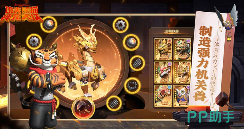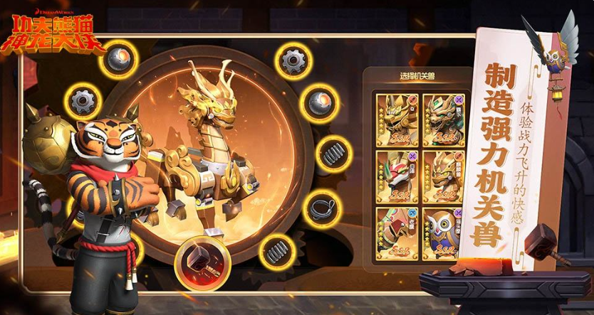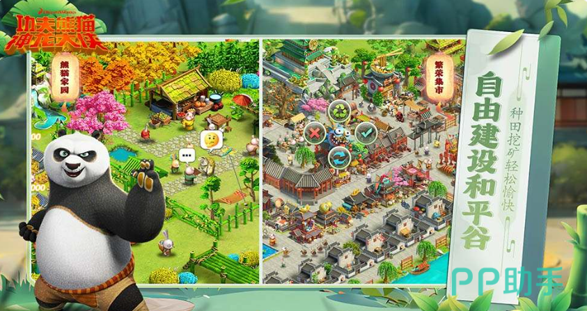 游戏中玩家将会化身成为神龙大侠和阿宝以及悍娇虎、师傅等诸多角色在和平谷展开激烈的战斗,在具有着东方美学的世界中,玩家们不及能够体验到电影中的精彩剧情以外,还将会使用各种中国功夫的招式来守护家园。