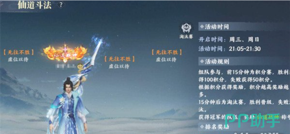 仙道斗法或是是一种采用了淘汰赛赛制的pvp竞技玩法,该活动只在每周的周三和周日对外放开,活动开放的事件则是晚上的9点05到9点半,从活动时间上不难发现仙道斗法每一次开启后只会进行25分钟,而在这25分钟内,玩家需要积极的去参与竞赛。