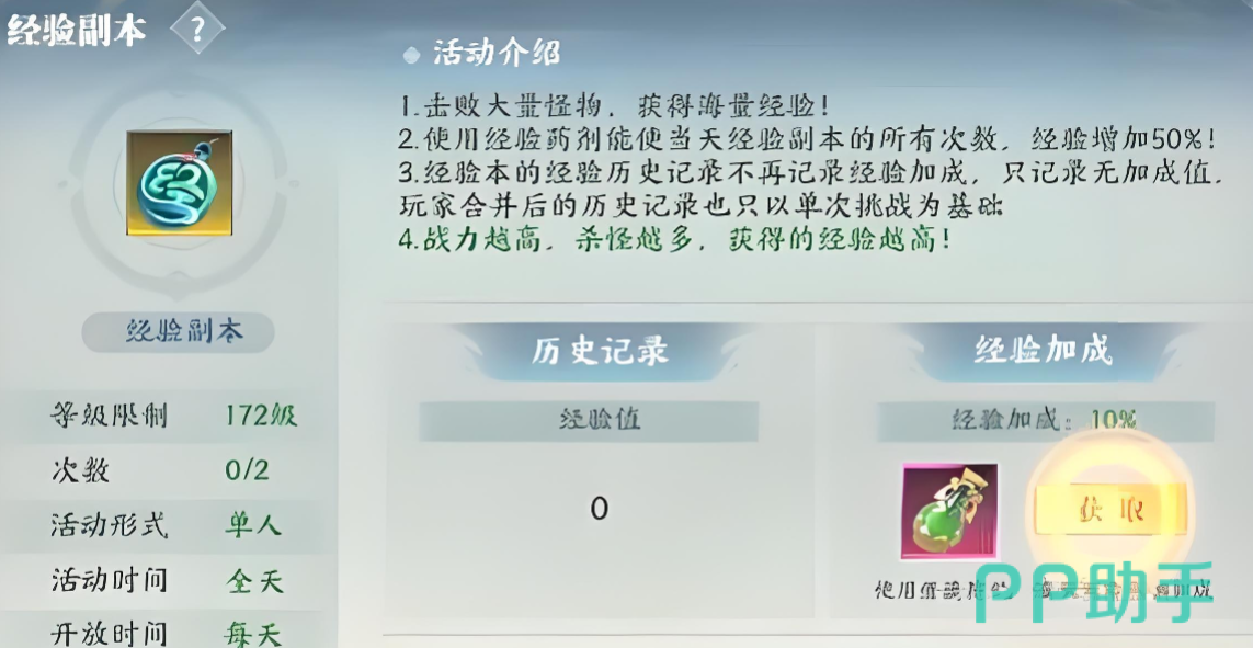 想要获取经验的话怎么能少得了副本呢,游戏中的副本是可以重复进行挑战的,虽然重复挑战副本,材料掉落的次数会出现降低,但是副本出产的经验奖励却不会有任何的变化,对于哪些差一点经验就能升级的顽疾啊来说,挑战副本也是最好的刷经验的地方,只要一键挂机刷去就行了,不过需要注意的是,大家在刷经验的时候一定要在体力充足的时候进行哦,这样能够要经验最大化的进行转化。