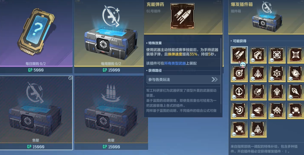 另外一种则是扩容插件,也是属于基础类型的,前往多种挑战和射击任务中都能够有机会获取到,在使用后的强度上和充能弹药插件的效果差不多。很多的常规射击玩法和模式中都能够使用这个插件辅助作战,机械的储存上限获得大大提升,容量变多后,在作战时可以无限的向敌方发起射击,保证战斗的持续性。