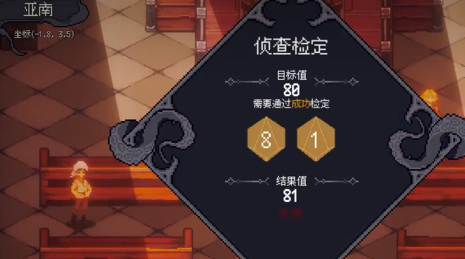 剧情分支这块,骰子的作用就更关键了。游戏里很多对话选项后面都隐藏着检定,你选了某个回答之后系统会暗中掷骰,根据结果决定NPC的反应。比如你想贿赂一个教徒套情报,如果判定失败他可能直接翻脸,判定成功才会透露关键信息。有些隐藏剧情只有在特定骰值下才会触发。