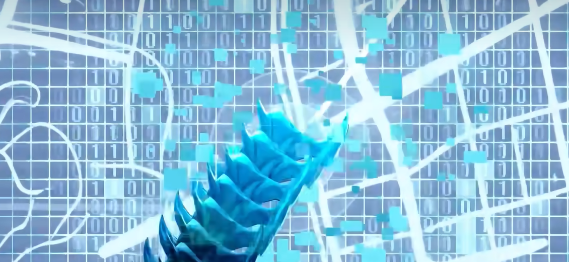 说到Exe这个角色,从签名就能看出来设计师花了不少心思。他用的是赛博朋克风格的字体,在所有角色里面最有辨识度。PV里展示的能力也很特别,可以操纵数据龙爪,还能进入到另一个位面去处理异象灾害,感觉有点像是赛博朋克2077里面超梦的设定。