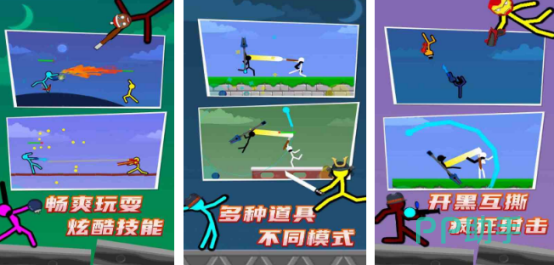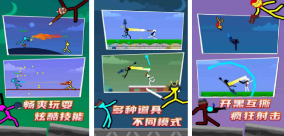 简约火柴人风格,每个角色都具备独立武器与招式,有联合玩法和决斗模式,满足不同玩家娱乐需求与喜好,比如1v1战斗,也可参与到双人对战中,可在同一手机屏幕上完成战斗。如果你想与家人共同享受亲子活动,或者与好友之间情感连接,那么火柴人对决是千万不要错过的,可共同开黑互撕。