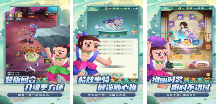 本作也是拥有回合制战斗玩法的葫芦兄弟衍生手游,可以竖屏控制众多葫芦娃完成回合制战斗,方便快捷的操作以及升级方式都是本作的特色,酷炫的坐骑也可以随便解锁对自身进行强化,随心切换的战斗技能也为本作润色不少,时装系统都是限时提供的哟,平民小白只要快速完成任务也可以解锁众多的道具,极为良心的整体内容让葫芦娃世界更加刺激。