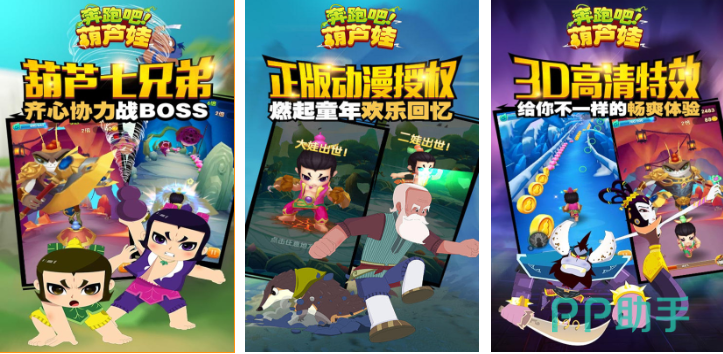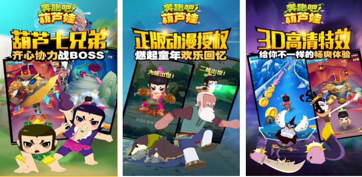 本作是经过上美影正版授权的葫芦娃主题3D跑酷类型神作,七个葫芦娃角色可以随心选择参与各种跑酷任务,每个葫芦娃都设有专属的技能可以辅助进行跑酷,在跑酷过程中也增加了BOSS战,可以一边跑酷冒险一边尝试与妖怪战斗,正版的上美影授权背景看上去也是如梦似幻,浓墨重彩的水彩画背景符合大家对葫芦娃的认知,高清的3D特效加持给人激情四射的闯关体验。
