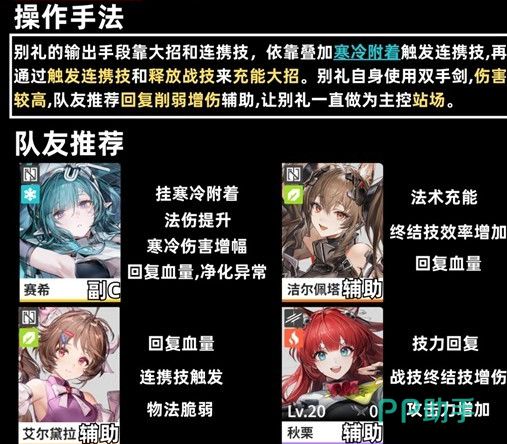 赛希会提供稳定的团队治疗与异常状态清除能力,在维持生存阈值的同时确保输出流程不被打断;艾尔黛拉作为罗德岛阵营的战术辅助,其技能兼具环境塑造与生命线维稳双重作用,尤其在对抗高防御目标时,“脆弱”效果带来的百分比减防可显著放大别离的实际伤害转化率;洁尔佩塔则专注法术类技能充能效率提升,并强化终结技生效质量,不仅大幅缩短别离大招就绪周期,其附带的治疗与净化效果亦构成队伍底层韧性的重要支撑。