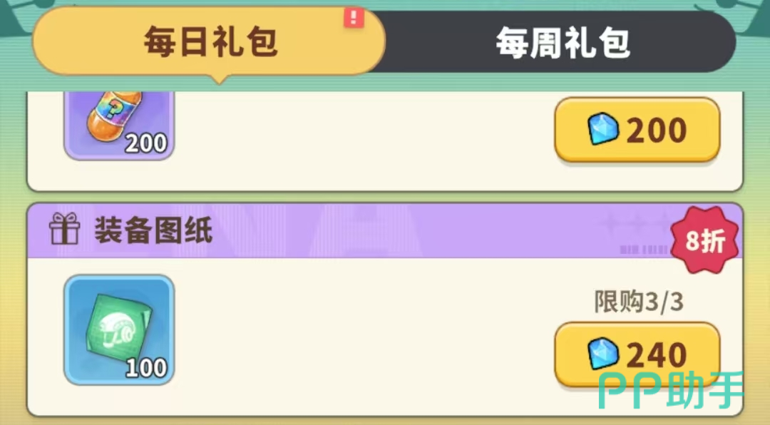 -- | 章节礼包 | 每日钻石礼包 | 每周钻石礼包 |