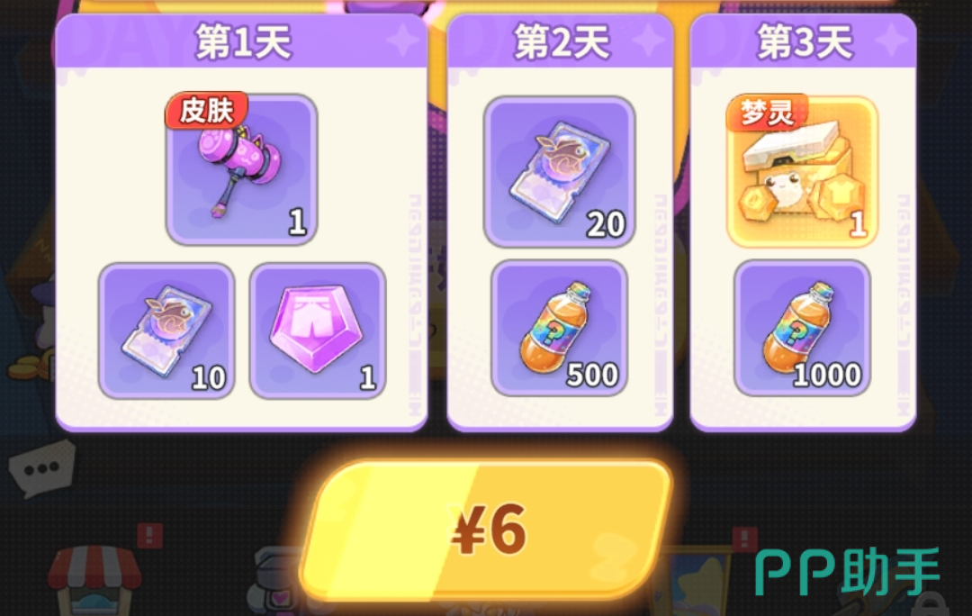 首充:6元,激活后连续三日每日领取一次专属奖励,包含随机传说梦灵、喵喵锤皮肤、梦境招募劵等核心养成资源。
