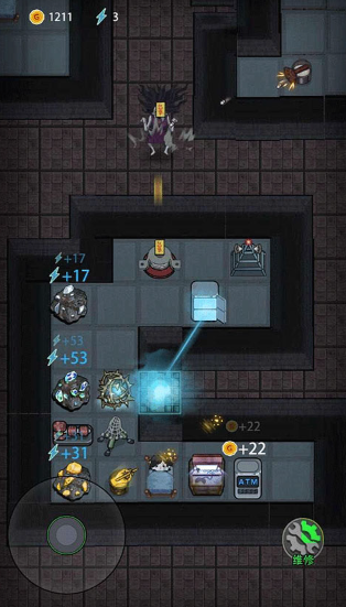 把塔防和冒险玩法放在了一起,让原本就紧张的对局更有层次感。游戏里还有不少道具,不管是发育阶段,还是对抗猛鬼时,捡起来就可以帮我们占据优势。宿舍的灯一灭,猛鬼宿管就会立刻冲过来发起猛攻,我们要做的是收集各类装备,搭建起牢不可破的防线,挡住他们入侵的脚步。除了守住宿舍之外,还能去不同的战场探索,要努力解锁更强的武器。