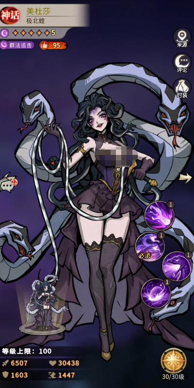 第四个就是美杜莎,美杜莎作为暗系里面的代表角色,可以带来一些自愈的效果,所以她在对于奶妈的需求量上面没有其他角色那么高,美杜莎最主要利用自己的中毒效果来中毒,给敌人之后带来多层次的影响之后影响对面的治疗效果,而且在美杜莎这样影响效果生成的同时,这其实可以玩一些长线作战的挑战,如果是高难度敌人的话,美杜莎的挂动能力其实可以带上各种有爆发效果的队友一起输出,这样的话进行整体的循环技能节奏,就可以让美杜莎在毒伤流派当中作为主要核心角色使用。