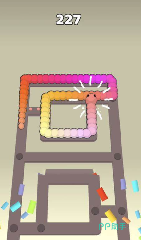 《蛇蛇吃豆豆》里面没有复杂的流程,他将经典的蛇身玩法以及吃豆豆的元素融合到一起,大家操纵小事,在场景里面移动吃掉,地图上的豆豆都能变长,同时还要避开其他人的蛇形角色和游戏边界,而且还能和全国各地的玩家实时联机,一起同台竞技,每局结束还有积分排名,看着小时从小变大,成就感十足。