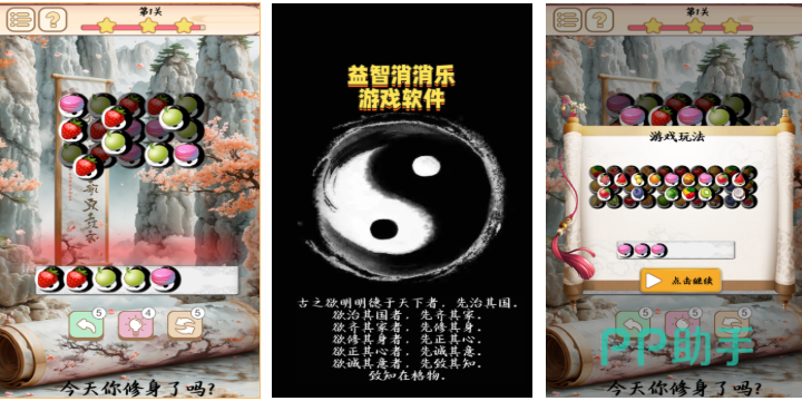 益智消消乐也是拥有点选式消除机制的水果消除类手游,毫无时间的设定可以随心所欲寻找水果进行消除,点触三个一样的水果并进行消除的机制考验手速,点选的消除机制给大家提供的沉浸感也更强,拥有水墨国风的背景跟消消乐元素进行结合,极为上瘾的特色三消机制也是这款神作的亮点,各类实用性道具的辅助加快了消除进度。