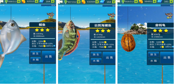 其核心特色就是以钓鱼为主题,通过沉浸式动画探索全球知名度极高的钓鱼场景有海洋河流。享受异国风光,通过单只手指操控高度模拟钓鱼过程,增强实施感,当捕获鱼类之后,可升级鱼线、鱼竿等装备,通过鱼类图鉴来收集各类型物种,部分鱼类加入水族箱当中自由培养。