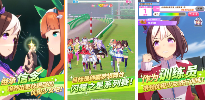 本作是款根据著名日漫赛马娘开发的高颜值风格养成类手游,跟赛马娘一样的模拟经营赛马玩法也是很有意思的,长着马耳朵的俊美美少女看上去也十分精致,剧情刻画温馨再结合二次元画风宛如穿越到番剧里,优异的视觉效果搭配赛马主题的玩法充满个性,一系列俊美少女的出现让游戏观赏性更胜一筹。