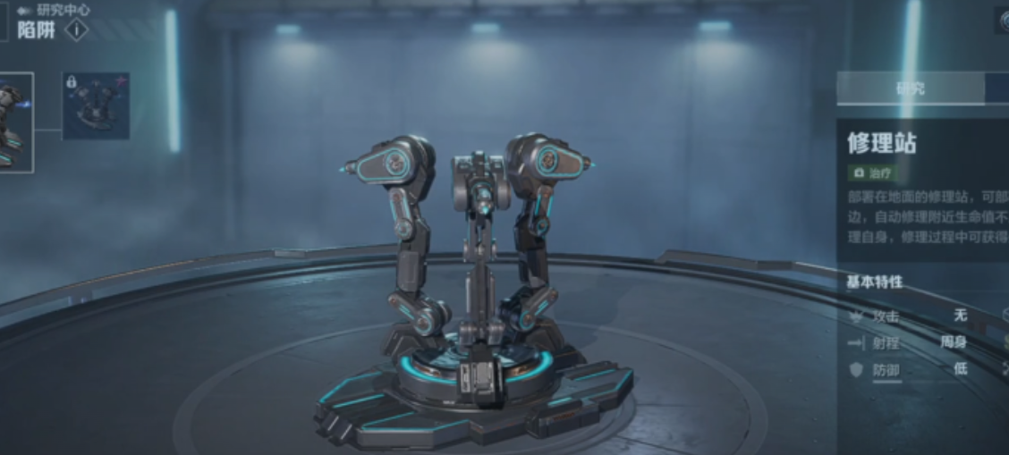 除了针对陷阱之外,玩家还需要注意修理站。在刚开始进入游戏的时候,玩家就已经拥有,这时候主要就是修复玩家角色的生命值,但是在刚开始的时候,修复的速度特别的慢,随着玩家的实力增强之后,玩家利用修理站修复的时候速度将会变快。