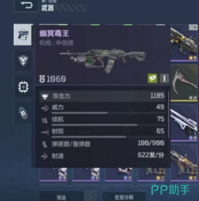 玩家在使用幽冥毒皇的时候,1号插件肯定是需要准备的,因为它能够实现多重装填的作用,并且在战斗的过程当中,直接实现了无间断的开火,从而能够让玩家在战斗的时候可以更加的顺利,避免在战斗的时候直接换弹。而断了整个节奏感。毕竟1号插件,它其实就是提升弹药的续航作用,能够实现持续性输出的作用。
