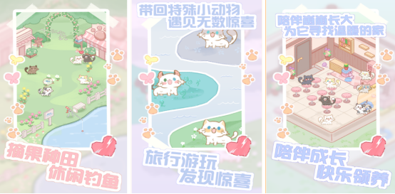 治愈性特别强,其中的主角刚开始接手了奶奶留下来的农场,但是在管理农场时总是会遇到很多的难题,偶然之间一只特别可爱的小猫闯进了自己的世界,并且共同和人物角色携手完成了经营农场的任务,在双方共同合作的情况之下,也吸引了更多可爱的动物,包括兔子或者是狗狗等等,还有上百种不同的小动物等大家来发现。