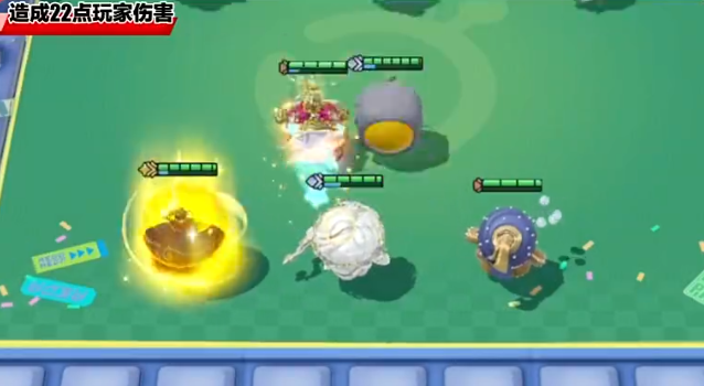 第二张卡牌【我吃年糕你吃黏糕】:战斗开始后,角色每3秒自动向一名己方或敌方蛋仔投掷年糕或黏糕——己方单位食用年糕可恢复25%当前生命值;敌方单位被黏糕命中则陷入禁锢状态,持续5秒内无法移动且无法释放技能。