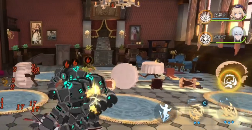 那么在此时使用技能进行输出的时候,很多的敌人可能会遇到一些比较不好进入的点位,那么此时大家用这里的技能效果就要根据大家当前跟敌人的站位,包括这个角色他自身的技能释放范围是什么样的来进行判定,如果是一些不好上去的区域,大家可以换一些灵活度比较高的角色来操作,比如跳跃到桌子上进行输出,找到这些躲避在角落当中的敌人,进行输出的话,可能会对于大家的战斗效果有更多的一个加成。