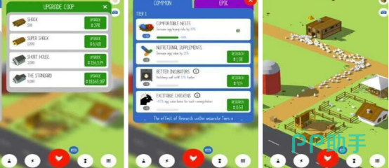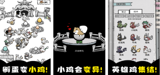 休闲为核心,完整的养鸡流程由你来掌握,采用鲜艳卡通风格,所有小鸡角色形象生动又可爱,让众多玩家爱不释手。种种设定超丰富,有鸡蛋孵化,收集小鸡,利用合成的方式打造出高级品种,完成目标收集获得乐趣。要学会管理资源,种植饲料,要规划鸡舍布局,在离线情况下,也能够获得超多资源,完成放置并持续收益。