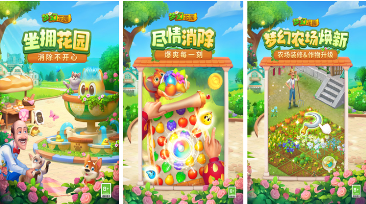 高压力的时候下载梦幻花园这款三消养成手游玩玩很合适,这是款内容充满梦幻感的消除休闲神作,消除不开心的经典三消操作带来了极为解压的气氛,暴爽的消除特效也是这款APP的主要亮点,获取农作物也可以获得更多辅助消除的道具,还能够经营花园与各种各样的植物进行互动,考验消除技术不肝不氪的玩法呈现更受欢迎。