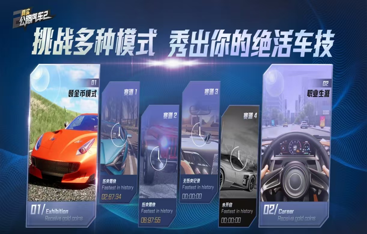 《真实公路汽车2》加入了很多非常热门的车辆,拥有着各样不同风格的车辆选择,很多热门的汽车模型在游戏中都可以驾驶,第一人称的视角会更加的有真实性。可以选择自己喜欢的外观颜色,选择不同的品牌和类型,比赛的过程中可以尽情的体验漂移。支持玩家们灵活的进行组队,不同的赛事有不同的玩法规则,到达终点还有金币奖励获得,可以用来购买更多全新的车,通过升级也可以提高车辆的性能。