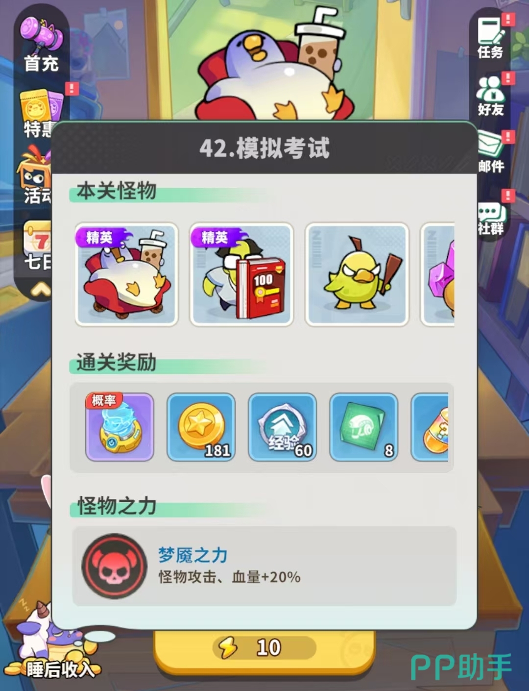 《梦境护卫队》第42章通关难点解析:如何高效击败“躺平大肥鸭”与“教导主任鸭”?本章核心挑战在于两名精英怪物的特殊机制——尤其是最终Boss“躺平大肥鸭”,其低生命值时自动回血的特性,常导致玩家反复拉锯、久攻不下。但实际并非无解,关键在于精准利用游戏内伤害类型与机制交互逻辑。