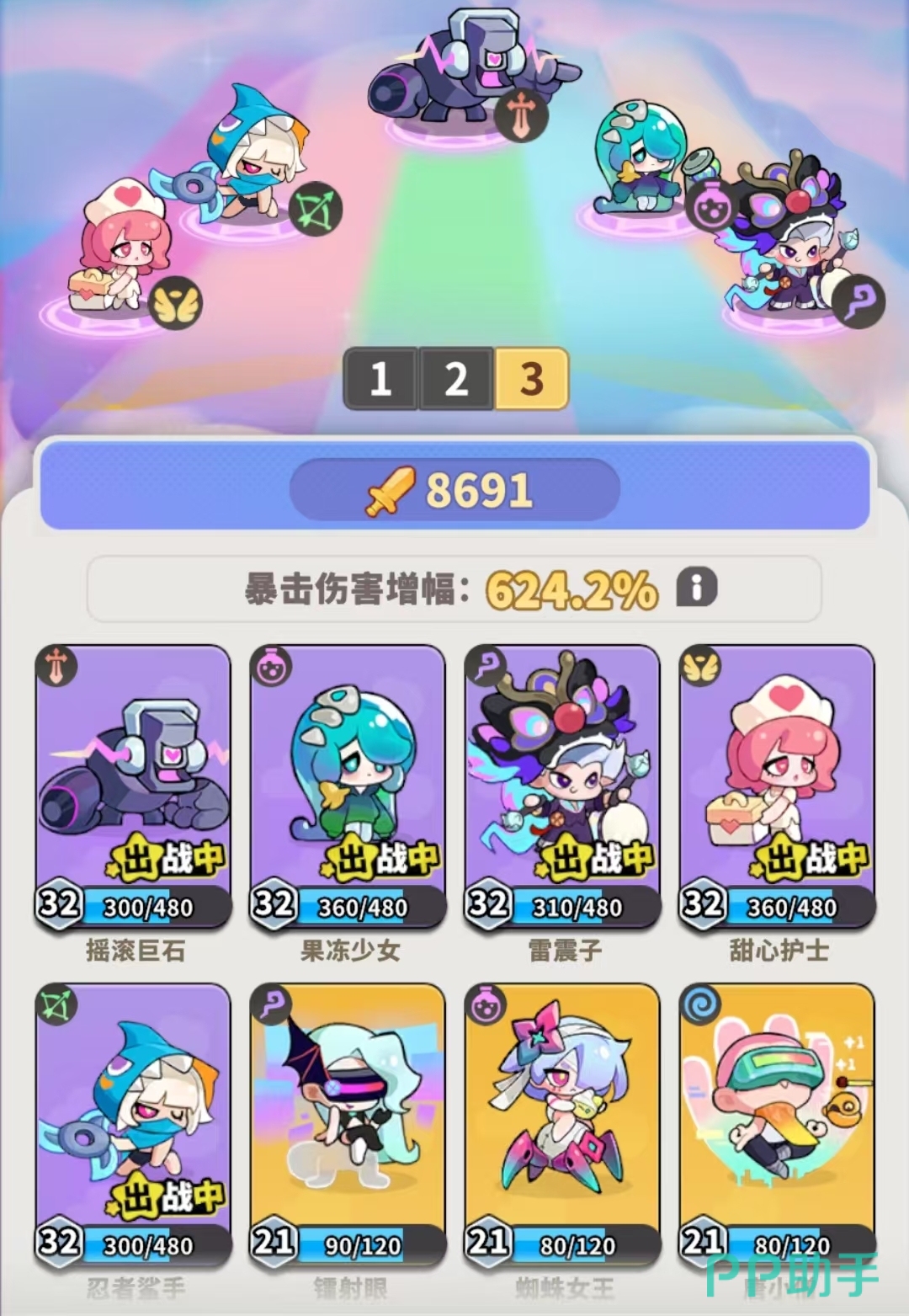 由摇滚巨石、果冻少女、雷震子、甜心护士、忍者鲨手组成的纯紫色品质阵容,碎片获取便捷、升星成本可控,所有角色均能在常规副本与活动任务中稳定产出。其中雷震子主打高频雷电群攻,忍者鲨手负责爆发斩杀与位移突袭,甜心护士覆盖治疗与护盾双重辅助,摇滚巨石提供可靠前排抗压能力,果冻少女视战况切换功能定位——常规局补足持续伤害,毒系适配关卡可转为主力输出。该阵容在10至20关实测表现稳健,平均通关耗时低于同练度传说卡组15%以上。