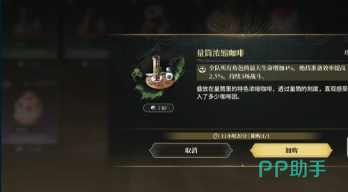 核心价值体现在饮品所附带的精准属性修正效果。例如量筒浓缩咖啡,饮用后可使全队生命上限提升4%,同时大幅提升大招释放效率。此类双重增益在警局缉拿要犯等限时高压任务中尤为关键,往往成为通关成败的转折点。