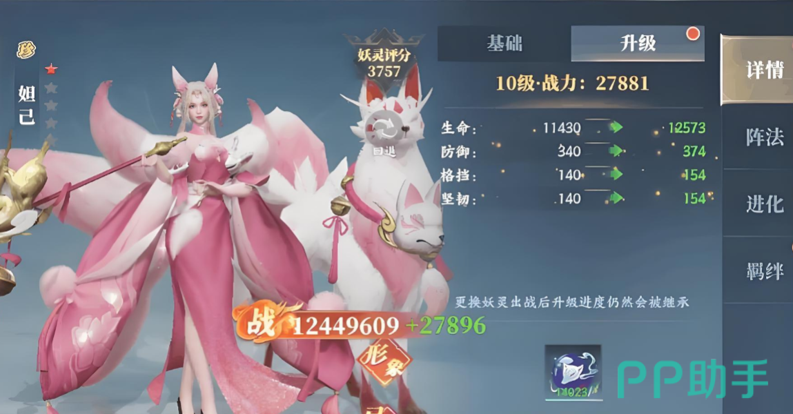 在实战层面,妖灵的觉醒技能需消耗独立资源“灵气”释放,该资源冷却机制与主角技能完全分离,保障了技能释放的灵活性与战术容错空间。战斗编队共设9个妖灵位,其中主站位3个直接参与输出,助战位6个不进入战斗序列,但可为主站位提供属性加成、状态增益或特殊效果联动,形成多层协同作战体系。