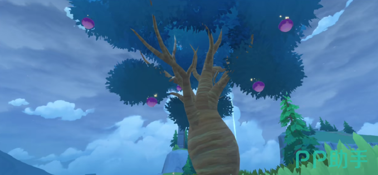 雪山区域是魔力果树最集中的地图之一。具体可前往蓝雨峰传送点,在左侧出口右转后穿越碎雪地带,沿直线飞行即可抵达第一棵魔力果树——树体呈纯白色,辨识度高。该点位周边资源密集,适合集中采集。继续向纵深探索,抵达圣羽祭坛建筑群附近,可在主殿旁发现第二棵魔力果树;其旁侧为一座古风石构建筑,此处存在固定化蝶刷新机制,建议搭配定时巡查策略使用。