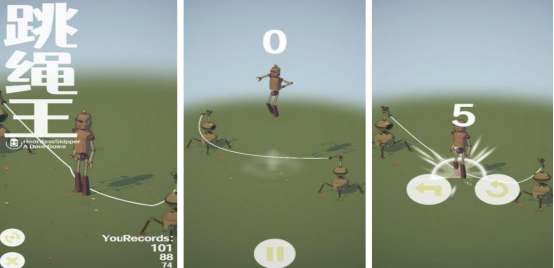 多样化的人物角色皮肤应有尽有,大家可选择自己喜欢的人物角色完成跳绳的任务。只要轻轻点击就可以完成跳绳。首先在主界面中将会看到挑战模式或者是多人pk模式,大家不光可独自去完成挑战,其次也可和其他的好基友一起完成跳绳,在开局之后就需要通过点击屏幕的方式跳绳50次,比较锻炼大家的手速。