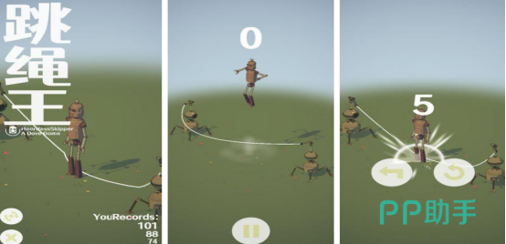 简单的操作方式,屏幕上将会看到一个简约的小人物通过跳绳的方式突破自己的高分,核心的要求就是通过点击屏幕成功跳过绳子,但是想让其中的人物角色跳得更高,那么就可以长按屏幕。按压屏幕的时间越长,人物角色跳跃的距离也会越高。每次成功跳过绳之后都可获得相应的分数,可在规定的时间之内看看自己的分数有多高。