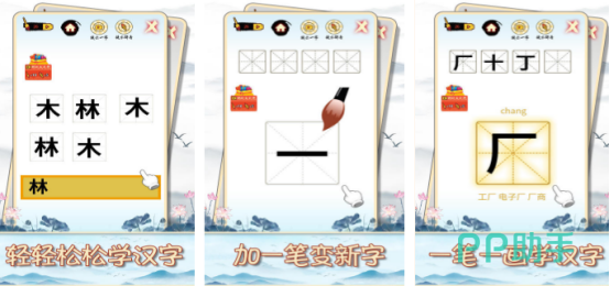 多样的关卡内容也覆盖不同的谜题类型,所有的关卡难度也是循序渐进的,比如在加一笔变新字这种玩法当中,看到简单的一字之后,就需要在屏幕上通过划线的方式加上一笔,从而形成一种全新的汉字,只要能够想到4个汉字之后就可以完成闯关,循序渐进即可,积累大量的汉语知识内容。