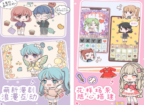 游戏里超多的服装以及花样的场景,既可以支持自由选择,也能随心完成场景的搭建。整体拥有着超多扭蛋娃娃角色,无论是他们的形象是怎样的,你都可以使用超多的配饰,甚至是服饰,开起浪漫的互动。在服装类型上,除了有洛丽塔这种特别可爱的,还有一些融入了宫廷华服等。通过创建角色,以及选择的服饰,也可以自由的更换背景。