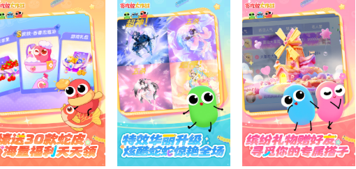 贪吃蛇大作战应该是大家都很熟悉的一个经典贪吃蛇神作了,这个吞噬类手游中的贪吃蛇看上去极为可爱,还设定了三十多款小蛇的皮肤可让大家切换造型,海量自愿福利每天都可以获取玩起来更为自由,吞噬进化的特效也做到升级提升了观赏效果,还支持多人合作一起对抗其他的贪吃蛇对手,多样很有意思的吞噬进化模式也值得挑战。
