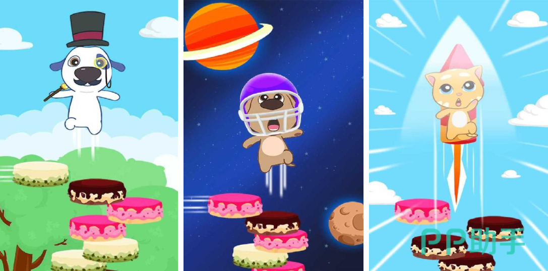 汤姆猫叠叠糕是款有着特殊跳跃互动玩法的竖屏小游戏,汤姆猫系列的猫猫狗狗都可以不断跳跃攀升高度,最终也有机会突破地图限制到达太空中,叠叠高的主题玩法增添了本作的娱乐性,萌系的猫猫狗狗角色加持也让本作显得更为生动,踩着各种糕点不断跳跃升级的感觉工位属实,悠闲轻松的气氛渲染也是大家喜欢本作的原因。