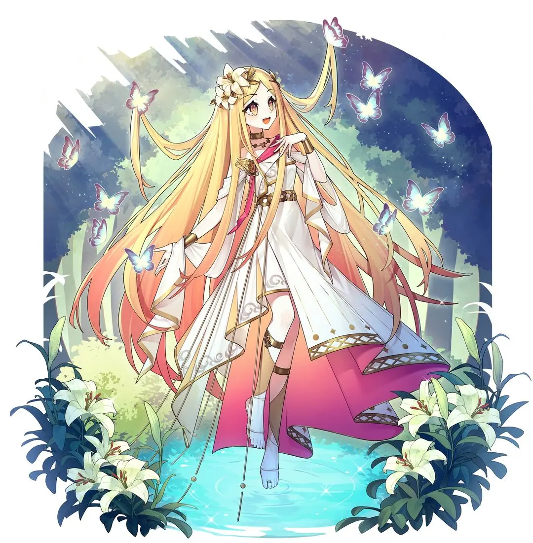 彩蝶歌者——源自蝶类生命的治愈向精灵。化形后展现柔顺嫩黄色长发与香槟色大眼,头顶佩戴黄色百合装饰,整体气质清雅温润。设定中强调其与晨光共鸣的特性,在破晓时分响应自然律动启程,契合游戏内时间驱动型事件机制。