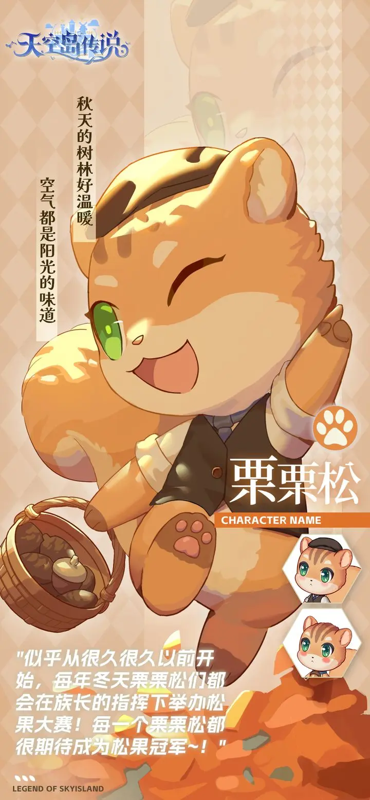 栗栗鼠——专注资源采集的基础辅助型精灵,外形设计突出圆润轮廓与亲和力,立绘中呈现典型松鼠神态,动作憨实自然,核心能力聚焦于松果类作物的高效获取。塔尔比亚狼灵——具备高辨识度的野性风格精灵,原型为灰狼,人形设定采用黑白挑染短发搭配牛仔帽及西部风服饰,整体造型强调英气与地域文化融合感。
