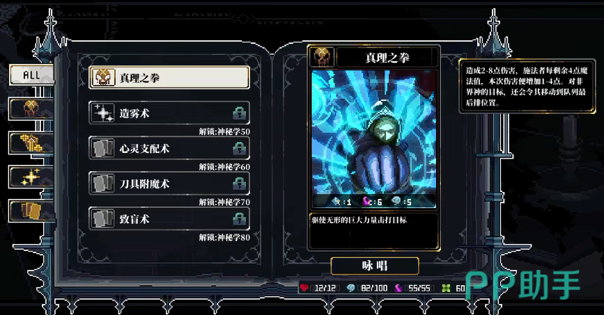 技能组合方面,建议主升「真理之拳」,该技能为近战型单体爆发技,基础倍率高、升级消耗低,中期即可完成满级;面对普通敌人常能实现一击秒杀,清图效率极佳。辅以「造雾术」增强生存维度——该技能提供概率型闪避加成,与魔法护盾形成双重减伤结构,在高频施法敌人面前可达成近乎全程免伤的效果;该技能仅需解锁即可,无需投入过多资源培养。