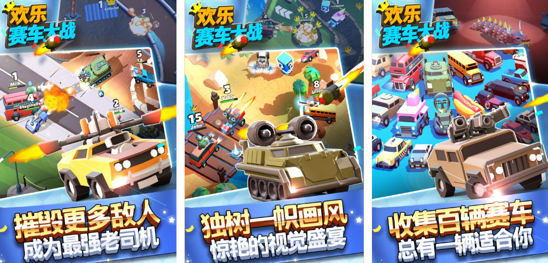 在这里,玩家们随时随地都能够体验到多人对决的pk快感,游戏的玩法非常的简单,不仅需要在过程中摧毁敌人的车辆,还需要收集地图上的随机道具,而只有将敌人摧毁之后才能抢夺他们的皇冠,在这场汽车碰撞的比赛之中成为新的王者,游戏对决以实时PK为主,非常适合时间比较零散的玩家们游玩。