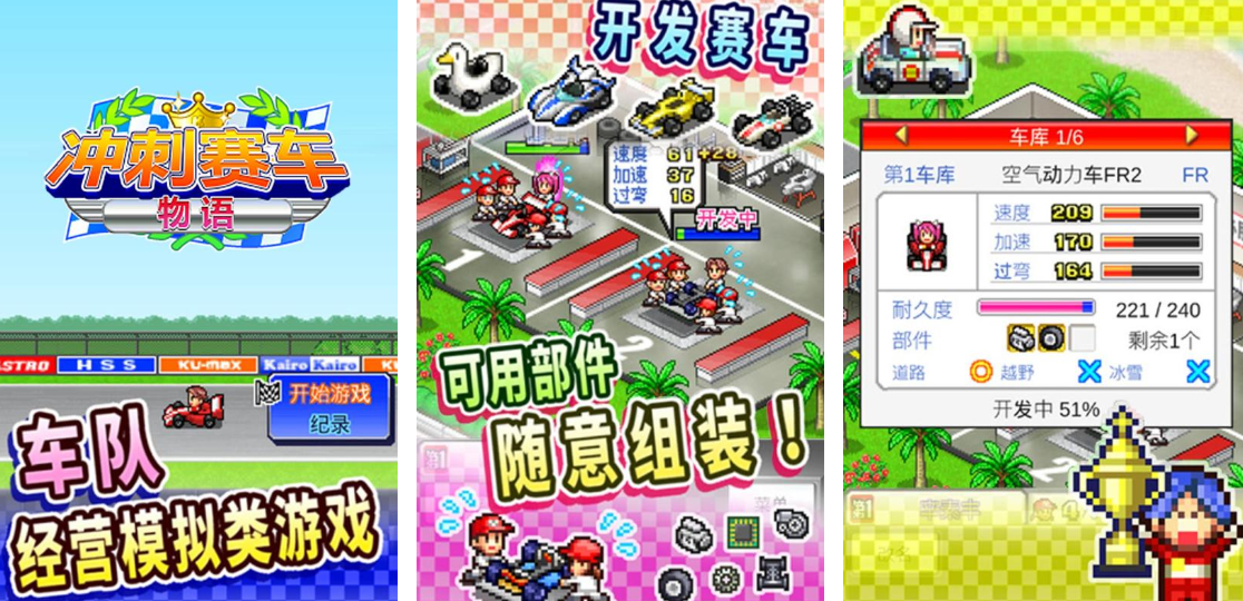 在这款游戏中,玩家们能够成为车队的老板,打造自己的强势车队,拉拢赞助商,培养属于自己的赛车手,为自己带来荣耀,前期玩家们提供丰富的赛前准备,打造各个部件可以自由强化组装的赛车,而最终是否能够获取冠军,全看玩家们在游戏中是否合理经营,这款游戏还有一个特点就是在对局之中,玩家能在游戏中感受到画面的旋转以及滑动过程的比赛画面。