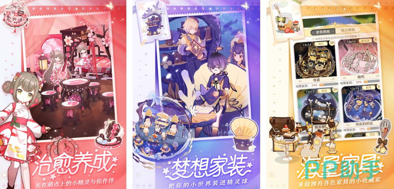 而这款游戏整体的玩法就更偏向于治愈养成玩法了,在游戏中玩家们会发现他的装扮整体偏向箱庭风格,而在游戏中,玩家们需要收集布置的装饰,还有就是收集养成一些家具以及精灵,家具可以让玩家们填充在自己的箱庭之中,而精灵养成则会成为玩家们的好朋友,甚至在游戏中他还拥有着一定的闯关冒险玩法,让玩家们始终兴致盎然。